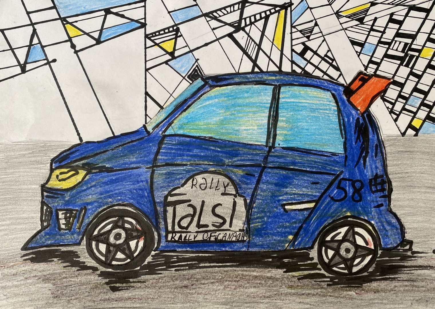 Zīmējumu konkursā „Mana sapņu rallija mašīna” 2023 iesniegtie darbi