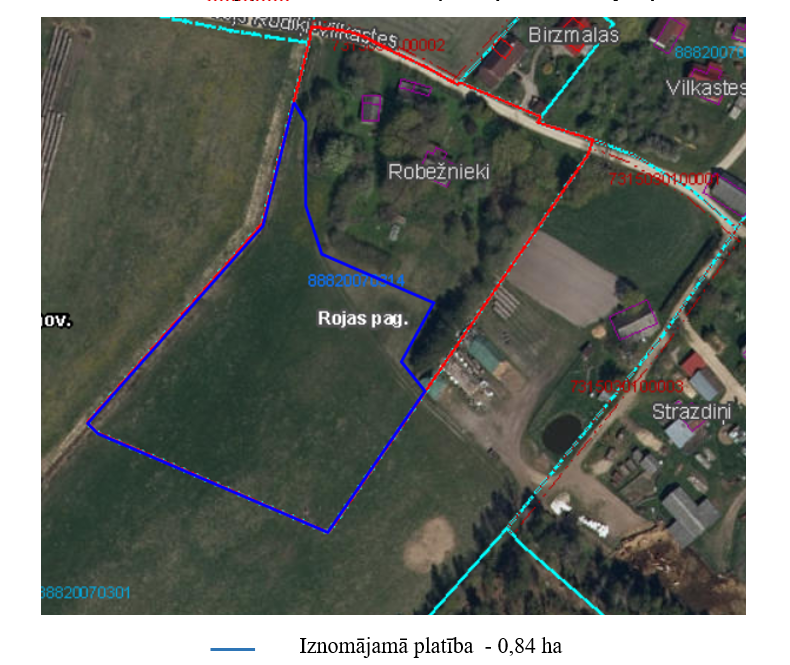 Nomas objekts – Talsu novada pašvaldībai piekritīgas zemes vienības ar kadastra apzīmējumu 8882 007 0314 daļa, ar platību 0,84 ha, kas atrodas Rojas pagastā, Rudē, ar nosaukumu „Robežnieki”. Saskaņā ar Rojas novada teritorijas plānojumu (Rojas novada domes 20.09.2011. saistošie noteikumi Nr. 22/2011 „Rojas novada teritorijas plānojums 2011.–2023.gadam”), Zemesgabala galvenā izmantošana ir Lauksaimniecības teritorija (L); nekustamā īpašuma lietošanas mērķis – Zeme, uz kuras galvenā saimnieciskā darbība ir lauksaimniecība (0101).