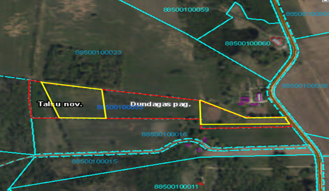 Nomas objekts: Talsu novada pašvaldības tiesiskajā valdījumā esošā nekustamā īpašuma „Akmeņdārzu zeme”, Dundagas pagastā, Talsu novadā, zemes vienības ar kadastra apzīmējumu 8850 010 0053 daļa – 2,7331 ha platībā.