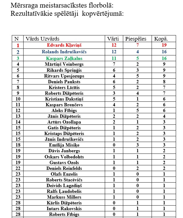 Rezultatīvākais spēlētājs kopvērtējumā pēc trīs posmiem – Edvards Kļaviņš, viņam 19 punkti – 12 vārti un septiņas piespēles.