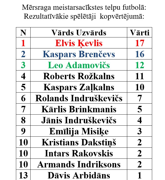 Kopvērtējumā rezultatīvākais spēlētājs ar septiņpadsmit vārtiem – Elvis Ķevlis.