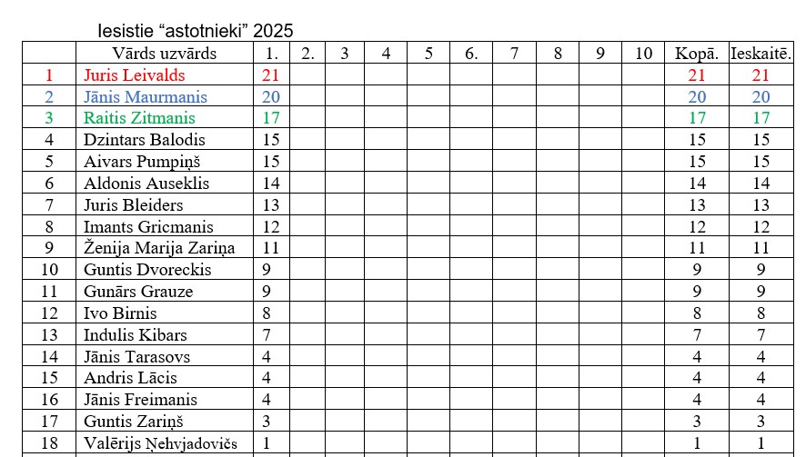 Visvairāk „astotnieku” (21 reizes) pirmajā posmā padevās Jurim Leivaldam.