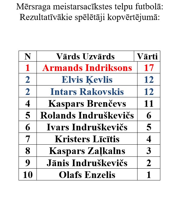 Kopvērtējumā rezultatīvākais spēlētājs Armands Indriksons – 17 vārti!