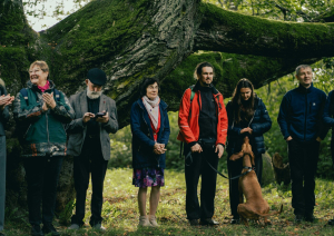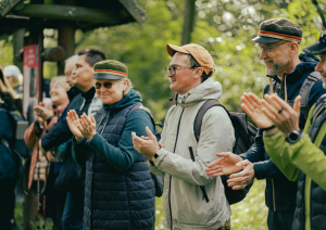 Saulrietā visus pārgājiena dalībniekus un pasākuma viesus ar fonda „Viegli” dziesmām un stāstiem priecēja „Ziedoņa muzeja” vadītājs Jānis Holšteins-Upmanis. Mājīgajā atmosfērā, kad virs galvām skanēja gājputnu balsis, notika kopīga sadziedāšanās – sirsnīga, piepildīta ar prieku par kopā būšanu.