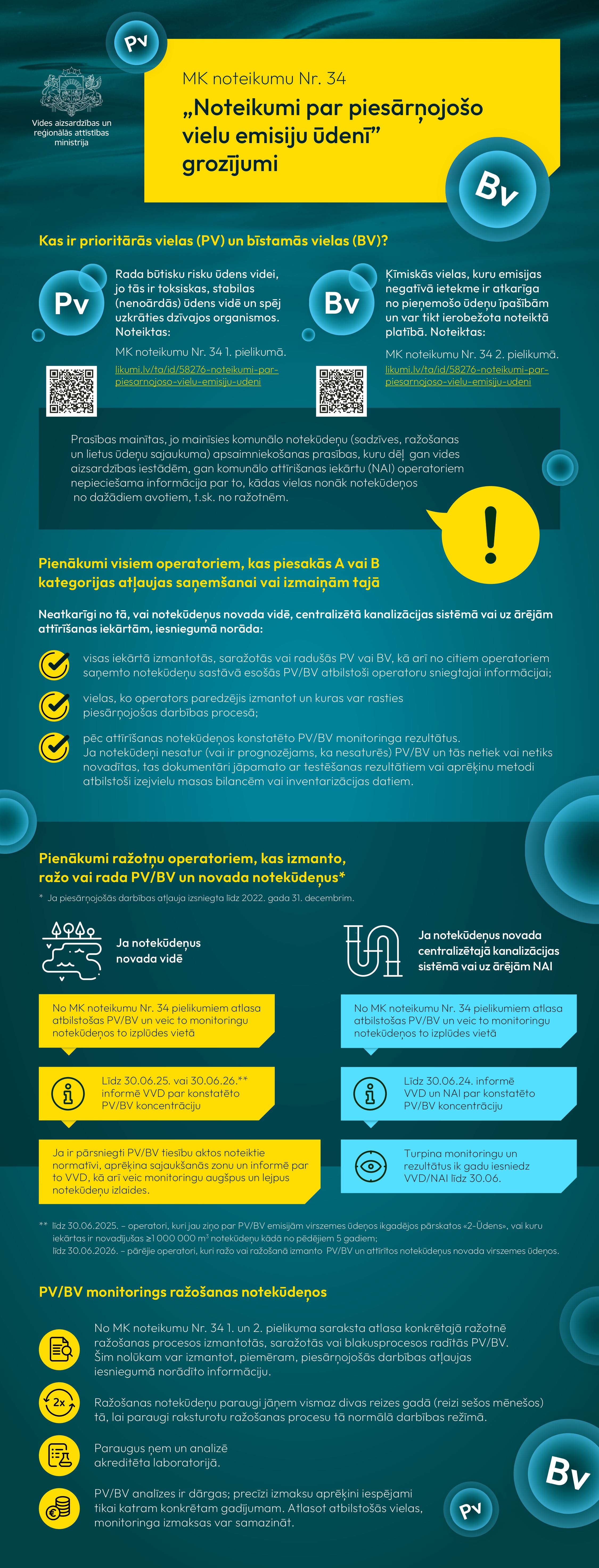 Grozīti 2002. gada 22. janvāra Ministru kabineta noteikumi Nr. 34 „Noteikumi par piesārņojošo vielu emisiju ūdenī”. Mainītas prasības attiecībā uz komunālo notekūdeņu (sadzīves, ražošanas un lietus ūdeņu sajaukuma) apsaimniekošanu, kā rezultātā gan vides aizsardzības iestādēm, gan komunālo notekūdeņu attīrīšanas iekārtu (NAI) operatoriem nepieciešama informācija par to, kādas vielas nonāk notekūdeņos no dažādiem avotiem, t. sk. no ražotnēm.