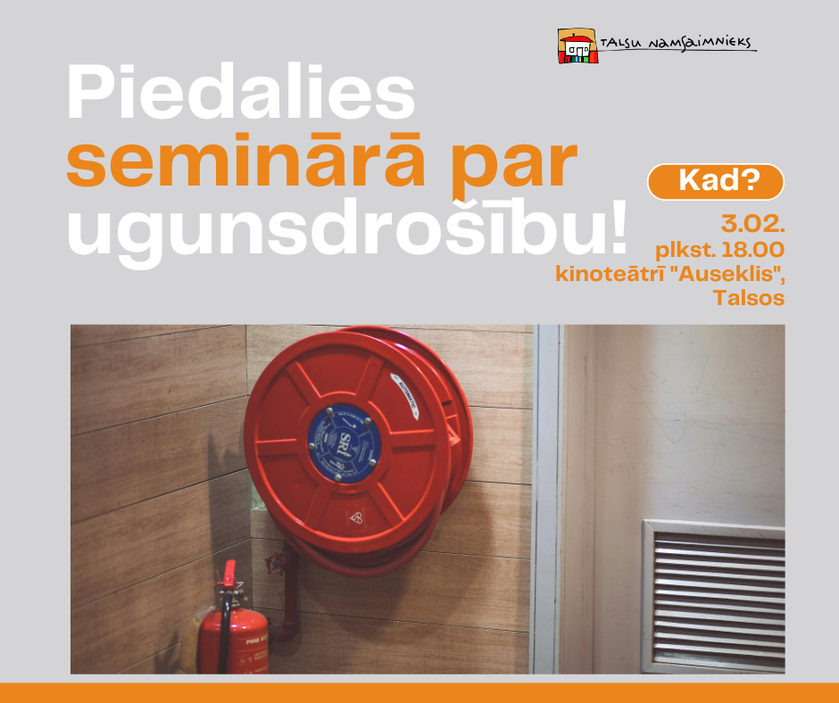 Lai izglītotu iedzīvotājus par ugunsdrošību un civilo aizsardzību, SIA „Talsu namsaimnieks" ikvienu aicina piedalīties seminārā.