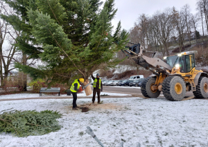 Lai egli varētu droši nogādāt līdz Pilsētas laukumam, Talsu pilsētas pārvalde piesaistīja vietējo uzņēmumu SIA „ERDE VS” no Vandzenes, kas šodien, 25. novembrī, veica egles nozāģēšanu, nostiprināšanu, transportēšanu un uzstādīšanu. Darbs nebija viegls, tāpēc īpašs paldies uzņēmuma vadītājam Viktoram, kurš nebaidās no izaicinājumiem un piekrita uzdevumam, ko uzņēmuma komanda savā praksē veica pirmo reizi. Profesionāli un rūpīgi tika paveikts viss nepieciešamais – tostarp izmanīga manevrēšana pa Talsu pilsētas ielām atpakaļgaitā, lai droši nogādātu egli līdz Talsu Pilsētas laukumam. Kā atzina darbu veicēji, sarežģītākais bijis egles izvešana no privātmājas teritorijas, kur zemajos kabeļos nedrīkstēja aizķerties tās kuplie zari.